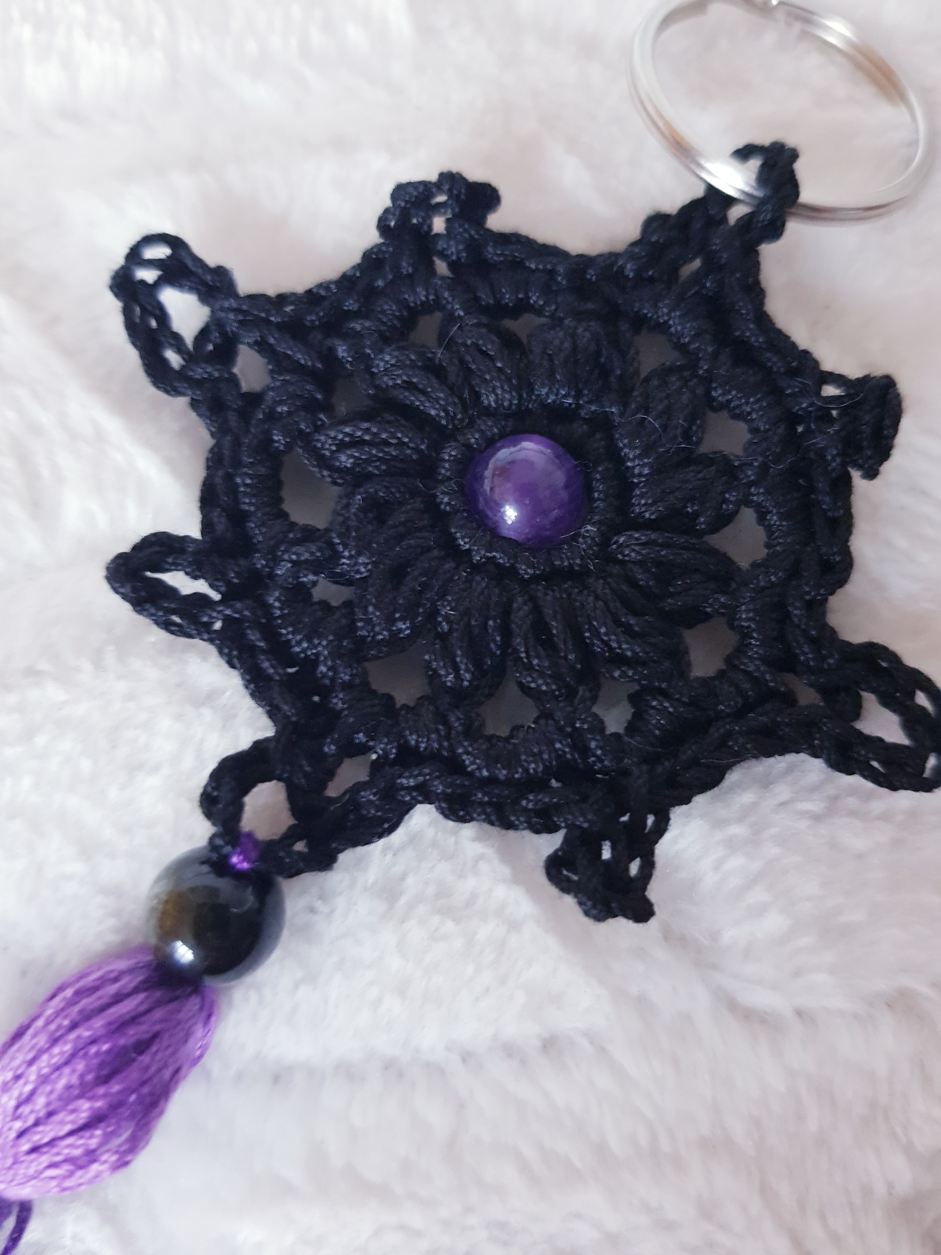 Porte-clés ou déco de sac à main réalisé avec du fil de coton mercerisé Oeko Tex.